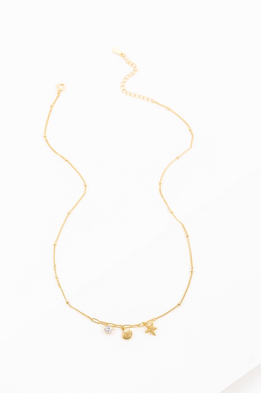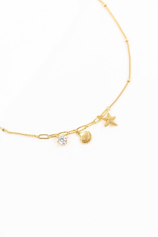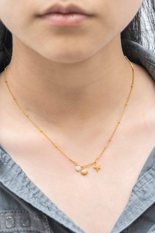 Catch beach vibes with the gold nautical charms that look straight out of the water. * Sterling Silver plated with 14k Gold. * Lobster Claw Clasp Measurement: * Chain: 15 in. 38.1 cm * Extension: 2 in. 5.08 cm * Charms: 0.25 in. 0.64 cm