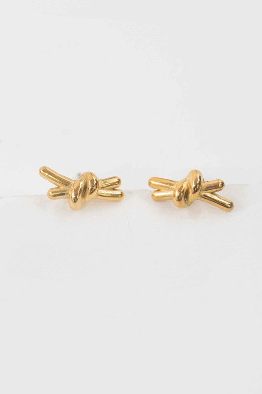 Gold stud earrings with knotted strands.* Stainless Steel* 14k Gold PlatingMeasurement:* 0.50in* 1.27cm