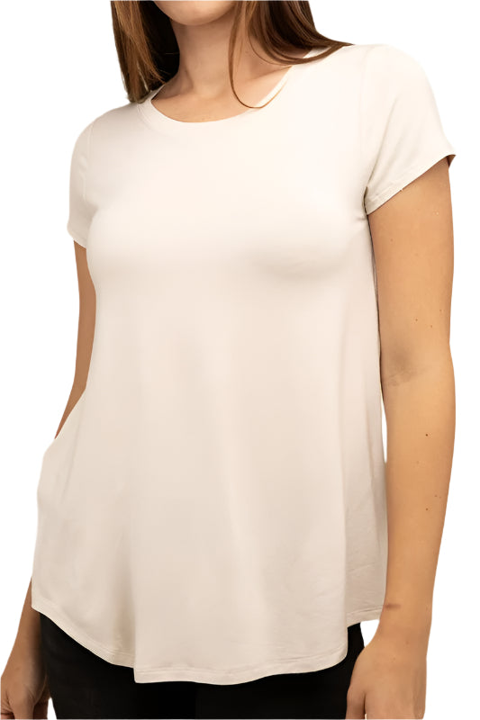 The Flowy Round Hem Rayon Short Sleeve Top is the perfect addition to your casual wardrobe. Crafted from soft, lightweight rayon, this top features a relaxed fit and a flattering round hem, making it both comfortable and stylish. Ideal for everyday wear, it pairs perfectly with jeans, shorts, or skirts for a versatile and effortless look.