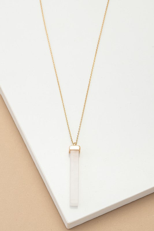 LONG BAR NATURAL STONE PENDANT NECKLACESIZE: 30\" + 3\"EXTENSIONPENDANT: 0.25X1.75\"