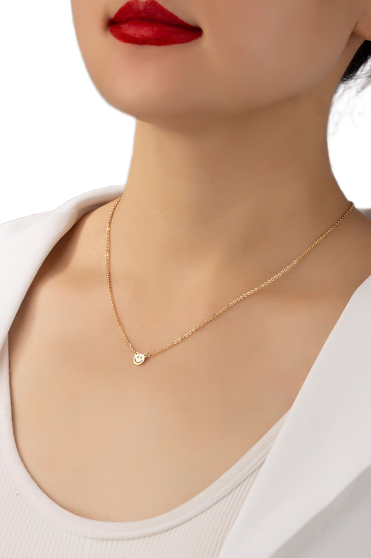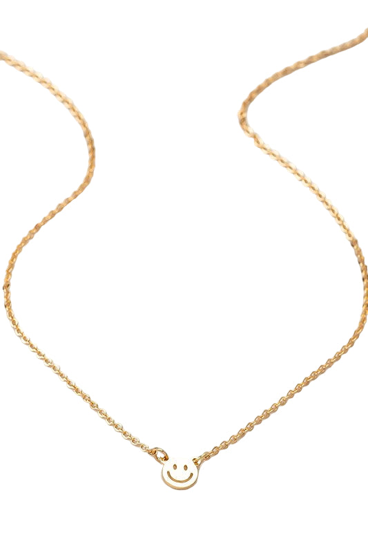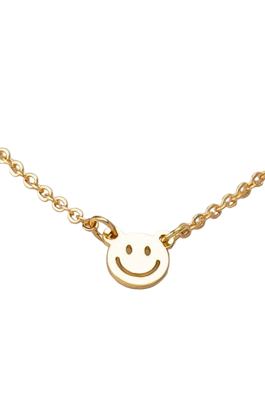 Premium brass mini smiley face on a delicate chain necklace. Made of brass and iron. Shiny gold plating. Size: 16\" + 3\" extender.
