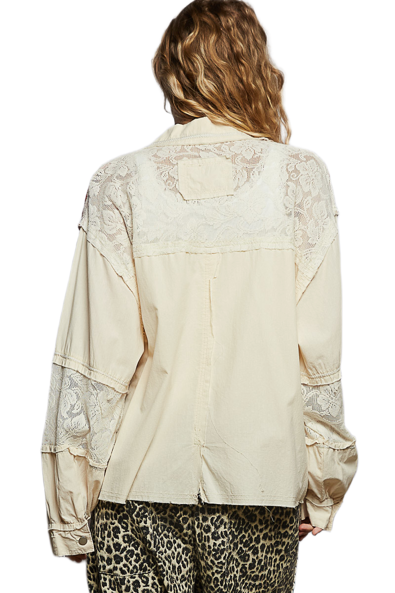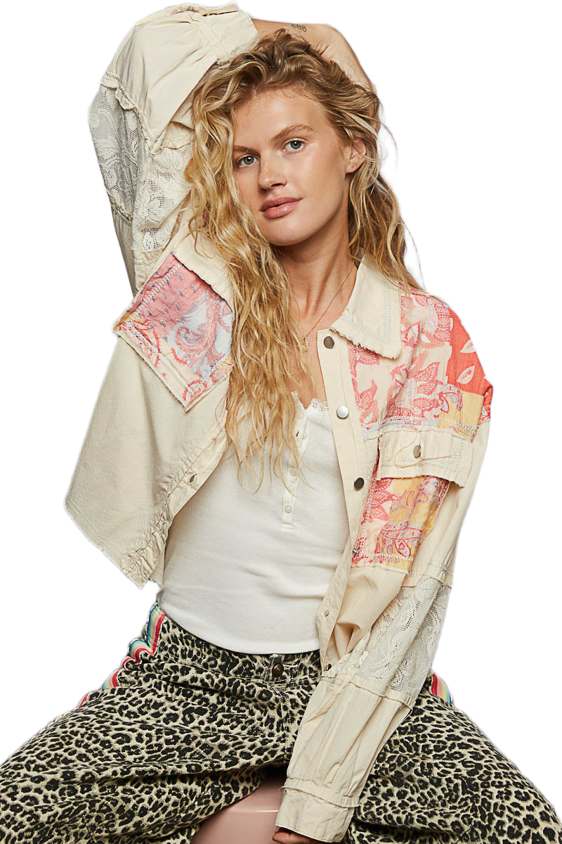 Enhance your outerwear collection with the Printed Woven Mix Raw Hem Jacket adorned with delicate lace details. This jacket features a unique blend of fabrics for a stylish and textured look. The raw hem adds a touch of edge, while the lace detail brings a touch of femininity. Elevate your ensemble with this fashion-forward piece that exudes charm and sophistication.